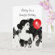 A birthday card for a woman, friend or sister. Funny aging sarcasm. You’re not getting old—you’re just becoming a classic." Cute birthday quote for her. Black and white graphic of a woman holding a red balloon.