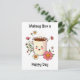 Wishing you a Happy Day! Cute postcard for a friend with a cup of warm coffee done in a Kawaii cute cartoon style and cute pink and white flowers.