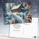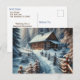 Christmas postcard. Text can be personalized on the inside. A pretty watercolor style ai art depiction of a log cabin in the snowy woods.