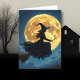 A super cool witch in front of a full moon Halloween Card with an inside coloring page.
