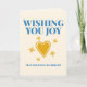 Versatile greeting suitable for birthdays and many happy occasions expressing warm and gentle happiness "Wishing you joy may your day be bright." with a joyful typography design with a playful heart illustration. The design features blue and yellow colors on a cream background. Personalize the name, and greeting to fit the occasion.