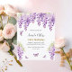 An elegant white background, decorated with lavender colored wisteria flowers and butterflies. Personalize and add a name and party details.