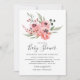 This stylish baby shower invitation features a hand painted, watercolor floral design in pinks, peaches, burgundy, and greens.