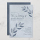 Wistful Leaves Modern Elegant Dusty Blue Wedding Invitation