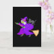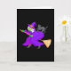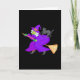 Witch and black cat on broom card