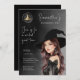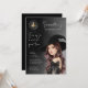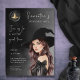 Witch themed Bachelorette Party Invitation. Design features a charming young witch, elegantly dressed in a black lace dress, adorned with a sophisticated black coquette bow. Her Magical Halloween hat adds a touch of mystery and enchantment . The top corner displays wax seal embossed with a golden witch hat, adding touch of dark elegance and mystique. The invitation reads “Join us for a wicked good time” in handwritten script, setting the perfect tone for a night of enchantment. Designed for the bride who adores all things magical and mystical.