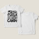 This Halloween-themed design features the playful phrase "Witch Better Have My Candy" arranged in a dynamic, mixed-font layout. The word "Witch" is displayed in bold, blocky letters, while "Better" is written in a cursive, flowing script, adding a sense of urgency and fun to the design. The phrase "Have My" is enclosed within a banner, further emphasizing the demand. The word "Candy" stands out at the bottom in large, block letters, with small skull illustrations integrated into the design. Additional Halloween elements, such as a witch's broomstick, a bat, a star, and wrapped candy, are scattered throughout the composition, enhancing the spooky and festive feel.