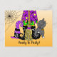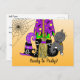 Witch, Cat and Spiderweb Cute Halloween Invitation Postcard
