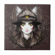 Witch Cat Halloween Creepy Cute Portrait Ceramic Tile