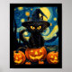 Witch Cat Starry Night Van Gogh Retro Halloween Ca Poster