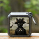 This whimsical Halloween artwork features a stylish black cat dressed as a Victorian witch, surrounded by a quirky array of jack-o'-lanterns under a surreal autumn sky. A perfect blend of spooky and charming, this fantasy print is ideal for Halloween lovers, gothic decor fans, and anyone who enjoys magical realism with a feline twist.