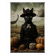 Witch Cat with Pumpkins Poster
