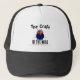 A personalised witchcraft quote, black and white trucker hat, with a black rustic witches cauldron. A fun birthday gift idea and accessory.