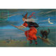 In the quaint village of Willow Creek, nestled amidst rolling hills and whispering woods, the annual Halloween celebration was a cherished tradition. The villagers, young and old, eagerly awaited this night of mischief and merriment. However, this year, a sense of unease hung in the air, a shadow looming over the festivities. - As the sun dipped below the horizon, casting long shadows across the cobblestone streets, the villagers gathered in the town square, their faces lit by the flickering flames of jack-o'-lanterns. Children, dressed in whimsical costumes, chased each other, their laughter echoing through the crisp autumn air. Amidst the revelry, an old woman, shrouded in a tattered cloak, stood apart from the crowd. Her face, wrinkled and weathered, bore the marks of age and untold secrets. Her eyes, piercing and intense, seemed to pierce the very souls of those who dared to meet her gaze. - As the night deepened, the festivities reached their peak. The villagers, their spirits lifted by the warmth of community and the thrill of Halloween, danced and sang under the watchful gaze of the moon. But amidst the revelry, a chill wind swept through the square, carrying with it an eerie silence. The music faltered, the laughter died down, and a hush fell over the crowd. - In the heart of the square, the old woman stood, her figure silhouetted against the moonlit sky. She raised her gnarled hands, and a low, guttural moan escaped her lips. The wind howled, and the jack-o'-lanterns flickered ominously. A sense of dread washed over the villagers, their hearts pounding in their chests. - Suddenly, the old woman's cloak fell away, revealing a grotesque visage, her skin pale and translucent, her eyes glowing with an otherworldly light. With a macabre grin, she raised her arms, and a wave of darkness enveloped the square. The villagers screamed in terror as their voices were swallowed by the encroaching darkness. - When the darkness receded, the square was empty, save for the old woman, her figure bathed in the eerie glow of the moon. She turned to face the moon, her laughter echoing through the silent night. The villagers, their hearts pounding with fear, had vanished without a trace, their fate forever sealed in the clutches of the Old Hag's wicked spell. - The End - 1910 Holiday postcard design in Public Domain.