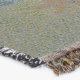 A quality printed throw has its advantages. This is a much finer weave throw than its loopier cousins, and though lighter, it is worth the investment for custom room accessorizing. The back is much prettier than the typical brown, and the fringe on the long sides very vivid, the selvage nicely done. Before photographing, I washed the throw in cold water, delicate, with a thicker woven throw the same size. On tumble dry low, this throw was dry in half the time as the other. This is a very practical quality if you use throws for furniture covers or to wrap up in frequently. The sleekness of the fabric makes it a great layer for accenting or protecting without the feeling of sitting on too much stuff. Perfect for napping or when you feel a light chill coming on. The color printing is beautiful and on this fabric, matched the design and color of my Photoshop image. This is an advantage for blending room fabrics and colors. The fringe on the short sides prints the colors from the design image and therefore varies from the side fringe. I streaked a white fractal line through the plaid pattern to give the illusion of weaving. This printed as crisp as an illusory thread, and put some white in the short side fringe, showing another advantage of print vs loomed- for artistic purposes, line lines, detail, and color integrity can be planned and preserved. My loomed throws have color limitations and more of a needlepoint texture. Print throws reproduce an exact image. The throw felt a little stiff straight out of the package, but this went away in the first delicate wash. Of course I searched the wash water for ink or bleeding and there was none.