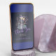 Chic elegant Halloween dark midnight blue and purple watercolor typography bridal shower thank you card template featuring a witch in a gray charcoal dress and hat with a broom and brushwood. Suitable for Halloween wicked witch-themed bridal shower. Digital download available.