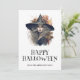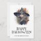 Watercolor Halloween card featuring a witch in a hat. Easily personalize this custom Halloween card with your family name and text.