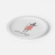 Cute happy Halloween witch party paper plates, for Halloween party treats, featuring an illustrated witch with magic wand, a big witches hat and striped stockings, with a quirky handwritten style font.