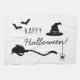 Witch Hat And Broom With Spider And Bats Halloween Kitchen Towel