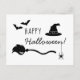 Witch Hat And Broom With Spider And Bats Halloween Postcard