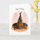 In the orange autumn light, leaves have fallen around a stylish Halloween witch's hat turned fairy tale dwelling. Original illustration by artist, Noël Snow.