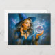 Witch in blue with crystal ball holiday postcard