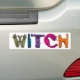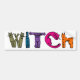 "Witch" spelled out in cute and colorful cartoon Cat Letters, with a white background, on a Bumper Sticker.