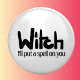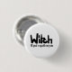 Witch in hand-lettered black ink saying button
