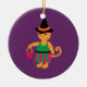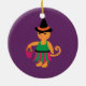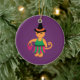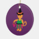 This cute little kitten trick or treater wants you to give her your best treats! This cartoon halloween illustration features an adorable orange kitty cat in a pink and green dress and a witchy hat with a bright colored band! Perfect for anyone who loves cats and halloween!