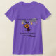 My overall review is that the T-shirt is nice, it fits true to size however the font is significantly smaller than advertised and you can't read it. The printing is unreadable and there is a strain to read it. It does not look like the advertised product. Maybe the shirt color is darker or a larger more visible font should have been used. Photos with and without flash and font is barely legible.