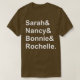 My 11 yo wore adult XL (5’7” 165#). The 8yo is small framed. She wore adult small and tied it in the back. Grandma wore adult large with long sleeve shirt underneath. Tall girl adult medium. Dark haired male adult large. Good quality dark Heather gray, Gildan brand shirt. -it was next up from basic choice and cost about $20 per shirt. Not too thick or thin. Washed and dried well, no major shrinkage. Not see-through. Can wear a bra under it fine. Screen print is just as shown and well done, front and back.