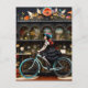 A cute cat witch on a bicycle rides by her apothecary shop fantasy AI generated art