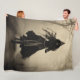 Witch on a Bike Fleece Blanket. © Dark Heart Desires. A large sherpa blanket with a sepia picture of a witch on a bike on it.