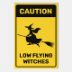 Flying witch riding a broom. Vector icon with customizable color. Custom background color. Custom text.