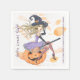 Chic funny Halloween peach orange, white and purple watercolor typography bachelorette party personalized napkin template featuring a witch in a lilac dress and dark purple hat with a broom sitting on a carved pumpkin and flying Fill in your text in the spots, You can choose to customize it further changing fonts and colors of lettering.The napkin is suitable for a chic crazy Halloween wicked witch girls' night party, bridal shower, baby shower, birthday or any other Halloween inspired party. --- If you need assistance to customize it, please contact me!