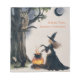 Personalised notepad for your every day notes with a little bit Halloween scene , a witch dressed in a flowing black gown and a tall hat, stirring a pot over a fire, owl on old tree, black cat and cresent moon.