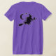 Halloween themed coffee mug with a vintage graphics of a witch, cat, broom and moon.