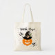 Tote Bag that has bats, a pumpkin, witches hat and a saying that says "Witch, Please!"