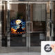Window Cling, Size: 11.00" x 8.00", Style: Opaque Design: All-over White Underbase, Shape: Rectangle, Display: Back of Cling