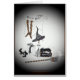Humorous and whimsical illustration of a witch’s boudoir featuring, hat, boots, broom, gloves, cracked mirror and cat!
