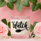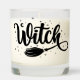 This black-and-white design features the word "Witch" in a bold, flowing script font, with the tail end of the letter "h" transforming into the handle of a broomstick. The text is stylized with a playful, handwritten look, adding a whimsical touch to the overall theme. Surrounding the word are scattered stars, creating a magical, starry-night effect that enhances the witchy theme. The broomstick, positioned diagonally under the text, adds a dynamic element to the design, suggesting movement and adding depth.