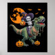 Witch Skeleton Riding Dinosaur T Rex Halloween Fun Poster