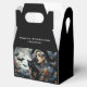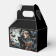 Halloween party personalized favor boxes. Grab your broom and fly over! Spooky gothic tattooed witch with a black cat, bats and full moon graphics.