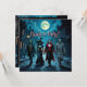 Halloween party invitations with ai art depicting a witch, vampire, mummy and zombie. Ready to party? 2q Add your Halloween party information in the personalize area.