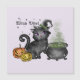 Adorable black cat in a witch hat beside a bubbling cauldron and glowing jack-o-lanterns, paired with the phrase "Witch Vibes." A charming Halloween-themed greeting card full of spooky-cute energy. Perfect for cat lovers and Halloween fans.