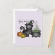Adorable black cat in a witch hat beside a bubbling cauldron and glowing jack-o-lanterns, paired with the phrase "Witch Vibes." A charming Halloween-themed postcard full of spooky-cute energy. Perfect for cat lovers and Halloween fans.