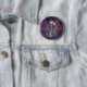 Chic funny Halloween peach orange and purple watercolor typography bachelorette party personalized button featuring a witch in a gray charcoal dress and hat with a broom, brushwood and a black cat Fill in your text in the spots, You can choose to customize it further changing fonts and colors of lettering.The button is suitable for a chic crazy Halloween wicked witch girls' night party, bridal shower, baby shower, birthday or any other Halloween inspired party.