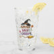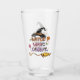 Playful Halloween drinking glass featuring a witch hat, flying broom, and colorful candies. Perfect mix of cute and spooky for trick-or-treat lovers. Great for Halloween parties, candy lovers, and witchy fun.
