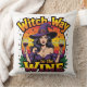 A pretty witch holding two glasses of wine and typography with Witch Way to the Wine.