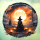 Witch with Candles and Fire - Wicca Halloween 2 Window Cling